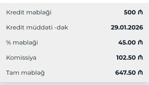 Ortaya çıxan mənzərə onu göstərir ki, faiz dərəcəsi süni şəkildə aşağı göstərilir, real qazanc isə komissiya adı altında gizlədilir. Bu isə artıq adi kredit şərti deyil, dolayı yolla faizlərin artırılması, başqa sözlə desək, gizli faiz mexanizmi təsiri bağışlayır. Vətəndaşa “aşağı faizli kredit” görüntüsü yaradılır, lakin faktiki maliyyə yükü bir ay üçün belə olduqca ağırdır.